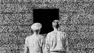 On the other hand, the real “heroes” of this animation are military personnel, people on a forest trip, passengers at the train station, visitors to famous museums… who are in a state of fear, panic, and alarm. What haunts the heroes of this animated film are not unidentified aircraft and autonomous weapons of the present or future, but The Black Square that appears as a shadow, the spirit of avant-garde revolutionary art, the zero point of painting. Malevich’s painting created in 1915 here becomes not only a mysterious object (McGuffin), which is the initiator of the plot, but also symbolizes the unknown, a portal to the void that expands, multiplies, sucks everything in front of it: land and see, time and space. The Black Square, with its rigid, rectilinear form, from the moment of its creation was considered a window into another reality, a portal that leads to the end but also to a new beginning, moving along the line between darkness and light, positivity and negativity. Thus, in this short film, The Black Square remains both a hero and an antihero.