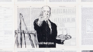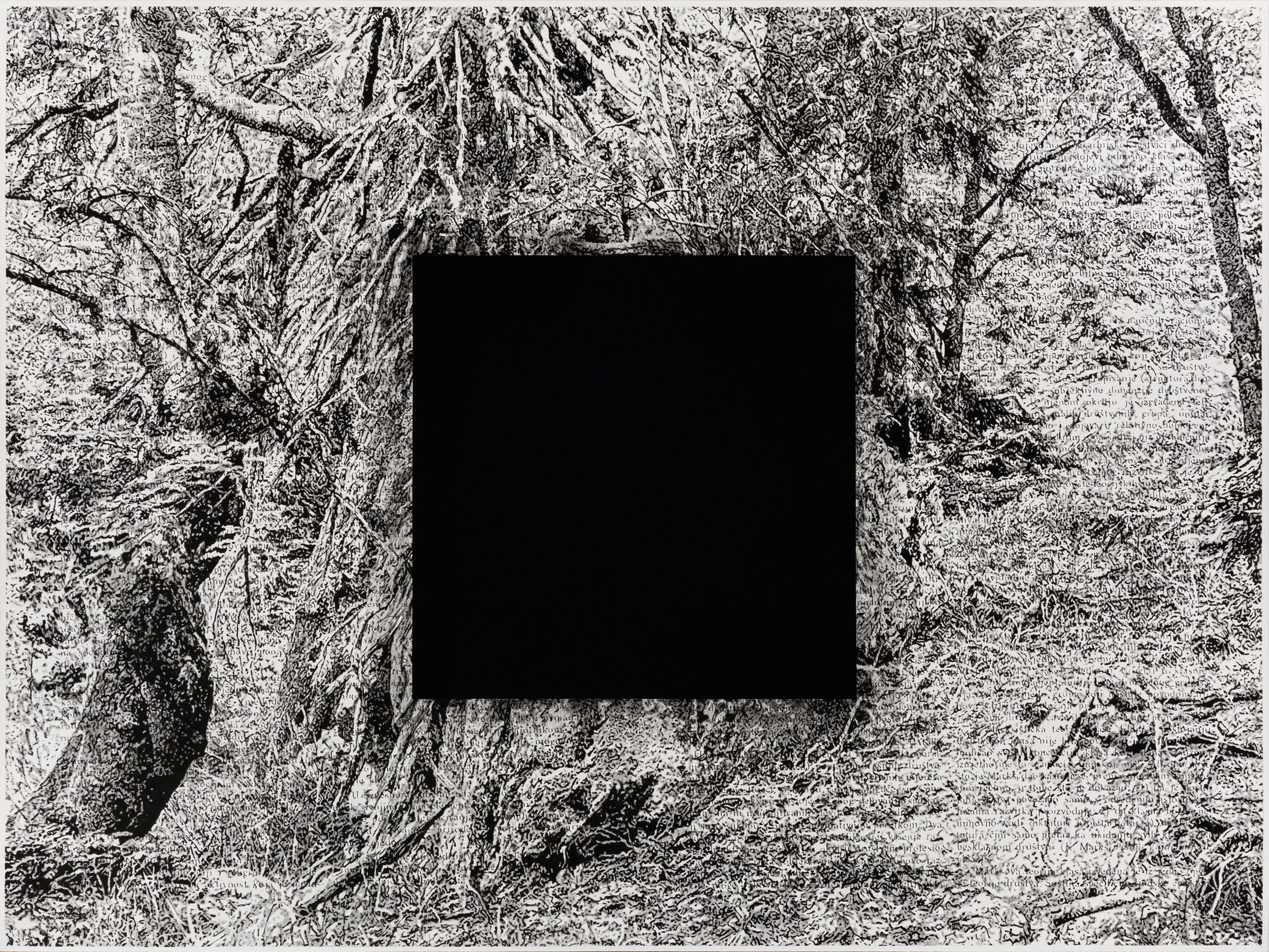 With a series of drawings and an animated film called Black Square Returns, I wanted to open a space for erasing the linear and hierarchical observation of reality, the border between foreground and background rules, abstraction and narration. The Black Square that floats through the landscapes and interiors drawn on the pages of the Military Encyclopedia is at the same time a protest and a need for silence, an illustration of a black hole that sucks objects and light within its orbit, but also a call to rethink both abstraction and reality.